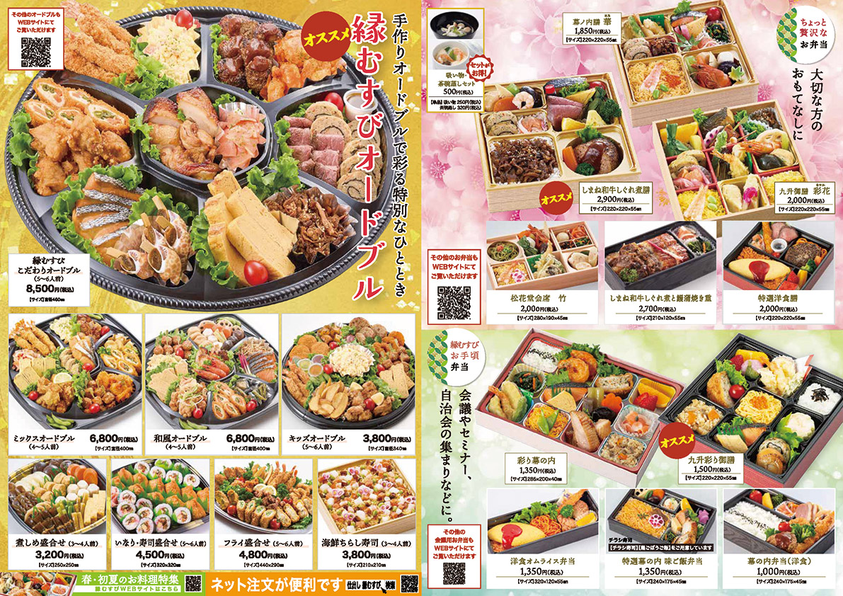 春の仕出し弁当始めました!法事法要・お祝いから行楽・歓送迎会などのお料理もお届け仕出し厨房縁むすびにお任せください。